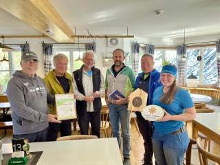 Die Wirtsleute Nadine und Detlef Wildenheim sowie die Sektion Bodenschneid gehören bereits seit Mai zu den ausgezeichneten Alpenvereinshütten. Die Sektion Bodenschneid hat für den Erhalt des begehrten Siegels eine energetische Sanierung des an die Hütte angrenzenden Salettls ausgeführt. Damit konnte für das Bodenschneidhaus ein ebenfalls sehr hoher Punktwert im Kriterienkatalog erreicht werden.