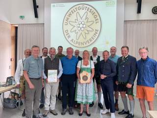 Nach der Überprüfung der Landsberger Hütte durch die Jury im Jahr 2024, fand im Sommer 2025 die Verleihung der Auszeichnung auf der Hütte der Sektion Landsberg statt. Die Sektion und Hüttenwirt Reinhard Frühholz haben die ökologische Betriebsführung für die Landsberger Hütte gegenüber der Jury anhand des umfassenden Kriterienkatalogs nachgewiesen.