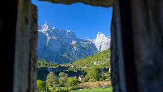 Was für ein Trumm! 800 Meter ragt die Südwand vom Arapi über das Shala-Tal. Kein Wunder, dass die 2218 Meter hohe Kalkzacke als Wahrzeichen der Albanischen Alpen gilt. Dabei sind die umliegenden Gipfel des Prokletije-Gebirges sogar noch höher. Die "verdammten" Berge rahmen das Bergdorf Theth ein, das zusehends zum Hotspot für Wander- und Bergsteiger*innen und andere Besucher in dem Balkan-Land avanciert.