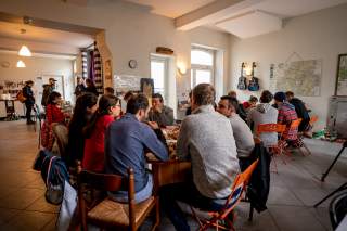 Für Patrick lebt das Bouldern vor allem von der Gemeinschaft, von einer guten Zeit, die er seinen Gästen bieten will: „Ich versuche, die Leute zusammenzubringen, dass sie sich treffen können, miteinander reden, gemeinsam zum Bouldern gehen“, erzählt er, als er uns auf dem Grundstück herumführt. Ein Moment sei ihm besonders im Kopf geblieben: das Feedback einer amerikanischen Boulderin, die in seinem Hostel zu Gast war. Patrick strahlt über das ganze Gesicht, als er davon erzählt: „Sie kam alleine aus Amerika zum Bouldern hier nach Fontainebleau und hat im Hostel Freunde fürs Leben gefunden.“