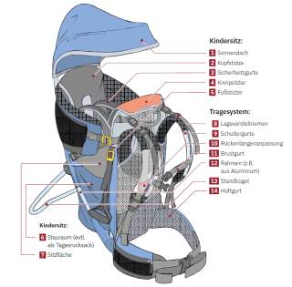 Bedienungsanleitung des Herstellers beachten. Gerade die Hinweise zum Einstellen von Tragesystem und Kindersitz variieren ja nach Hersteller und Modell.