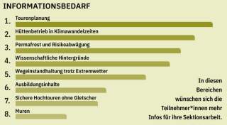 Der Rückgang klassischer Disziplinen macht Anpassungen in der Ausbildung nötig (z.B. alternative Winterangebote, gletscherfreie Hochtouren, Fortbildungen zu Klimawandel).