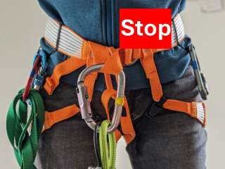 In der Routine oder an müden Tagen kann man den Karabiner durch Fahrlässigkeit falsch einhängen.