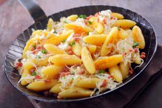 Klassiker wie herzhafte Kässpätzle mit würzigem Bergkäse oder deftige Schupfnudeln mit Speck; eine reichhaltige Brettljause oder auch ein resches Gröstl begleiten Bergbegeisterte seit Generationen. Verständlich, denn die traditionellen Speisen der Alpen bieten genau das, was in den rauen Bedingungen der Berge notwendig ist: Sie machen lange satt und sind zugleich nahrhaft – mit einer Mischung aus lang wirkender Energie und einem Zuhausegefühl, das sich am Teller einstellt. Heute wie in früheren Zeiten, als kaum jemand daran dachte, einfach in die Berge zu gehen, nur weil es Freude bringt.
