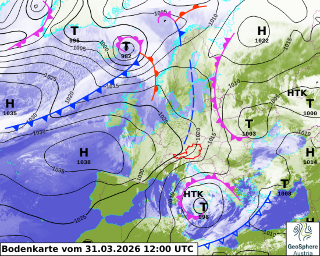 Am Donnerstag setzt sich mit mehr Hochdruckeinfluss wieder zunehmend die Sonne durch. Am Morgen und Vormittag hält sich im Donauumfeld aber noch lokaler Nebel und Hochnebel, der sich bis am Mittag meist auflöst. Nachmittags zieht mit einer nächsten, recht schwachen Störung aus Nordwesten ein Wolkenband durch. Nachfolgend regnet es von der Eifel bis zum Harz etwas, wenig nasser Schnee fällt nur in den allerhöchsten Lagen. Nachts zieht das Niederschlagsband weiter gen Südosten. Temperatur in 800 m bis um 9 Grad, in 1000 m bis um 5 Grad, in 1200 m bis um 3 Grad. Nullgradgrenze von 1300 bis 1500 m. Wind in 800 m bis um 20 km/h, in 1000 m bis um 20 km/h, in 1200 m schwacher Wind bis um 20 km/h im Mittel, Böen bis um 50 km/h aus dem Sektor West.Letzte Aktualisierung durch den Wetterdienst der GeoSphere Austria, Regionalstelle Innsbruck: 31.03.2026 um 10:54:33 Uhr